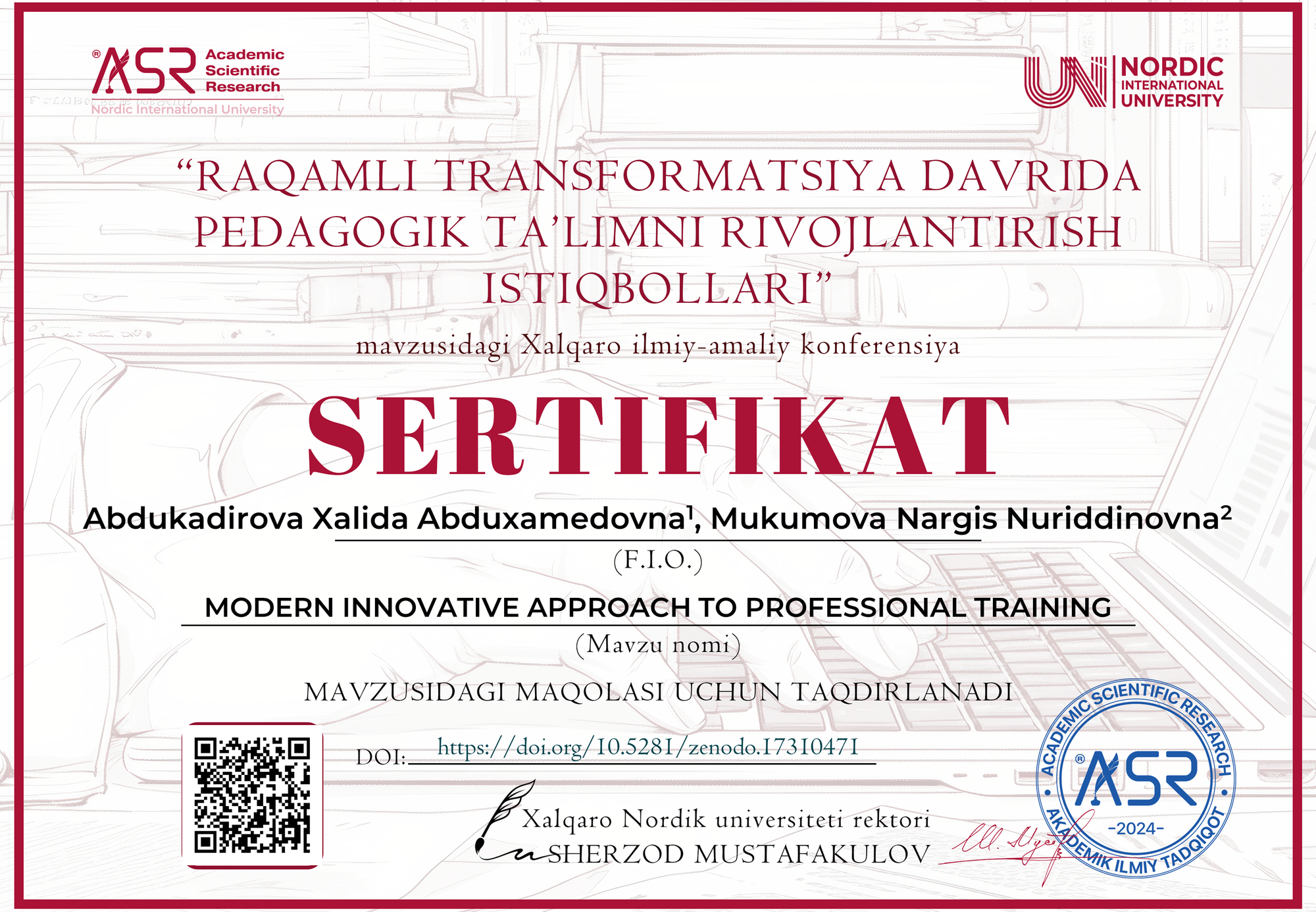 The article successfully demonstrates that innovative professional training and modern HR management are indispensable for building an effective and competitive economy. The authors underline that education and lifelong learning are the foundation of a nation’s progress.